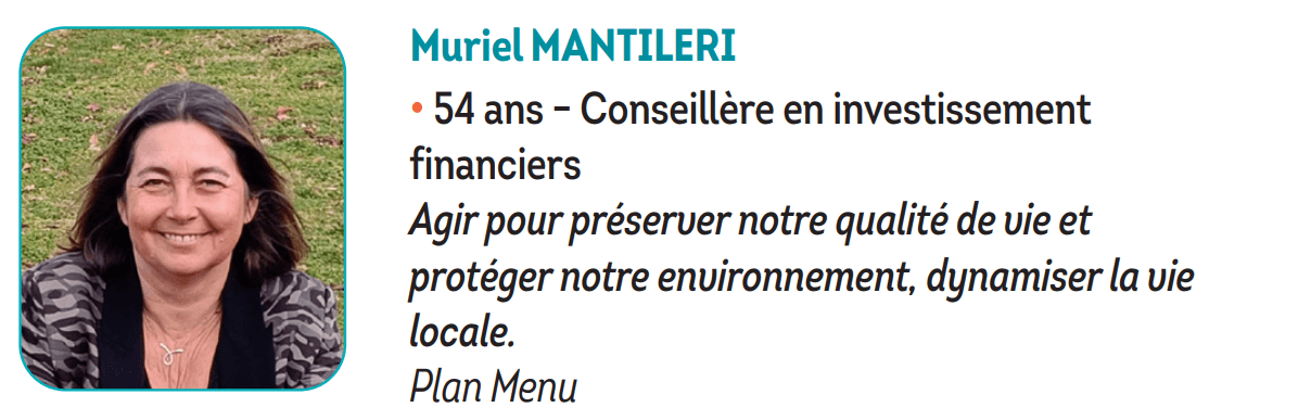 Adrienne Pervès est à nouveau candidate pour un second mandat. Elle a présenté le bilan des actions de la municipalité Bilan.